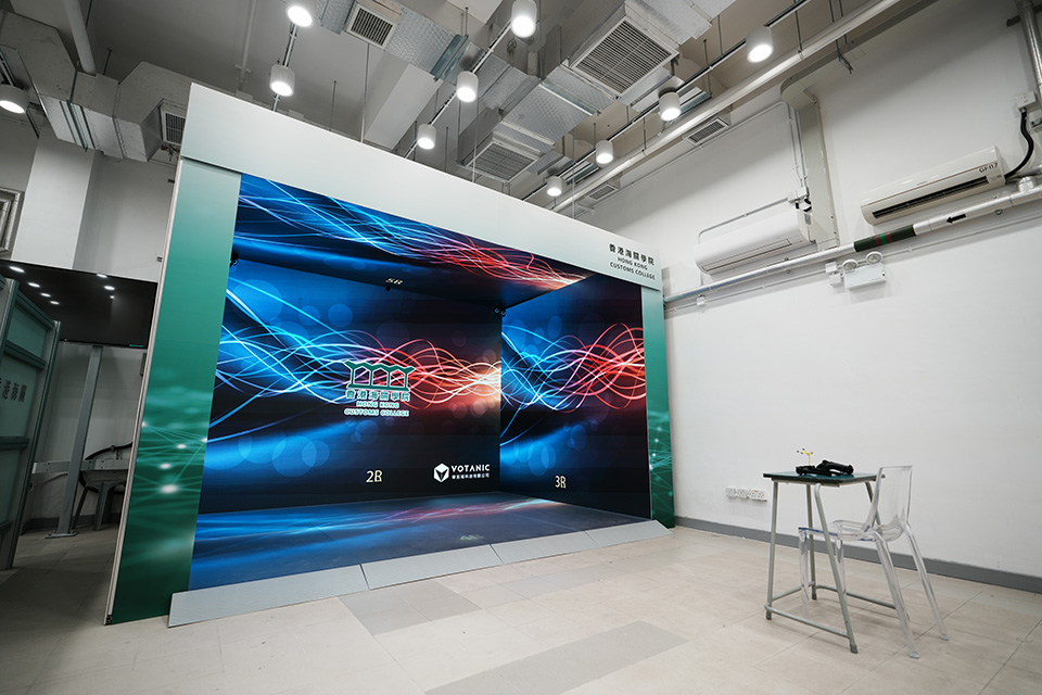 海關學院為新入職及在職人員提供各項訓練及專業評估,增設了五面3D互動式LED虛擬實境系統作訓練設施。我們除了幫助海關建造洞穴系統外,也利用Votanic專有內容創建程式製作特定的培訓場景(例如基本貨車搜索),用作培訓同事搜查等保安工作的訓練。
